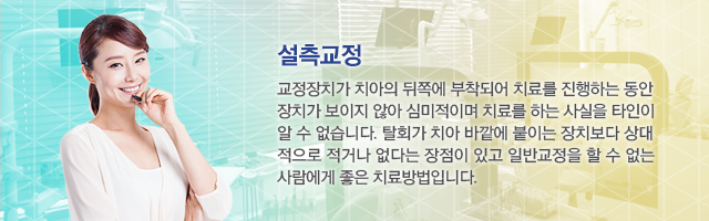 Ä¡¾ÆÀÇ µÚÂÊ¿¡ ºÎÂøµÇ±â ¶§¹®¿¡ Ä¡·á¸¦ ÁøÇàÇÏ´Â µ¿¾È ÀåÄ¡°¡ º¸ÀÌÁö ¾Ê¾Æ ½É¹ÌÀûÀ̸ç Ä¡·á¸¦ ÇÏ´Â »ç½ÇÀ» ŸÀÎÀÌ ¾Ë¼ö ¾ø½À´Ï´Ù. ¹Ù±ù¿¡ ºÙÀÌ´Â ÀåÄ¡¿¡ ºñÇØ ÀåÄ¡ÁÖº¯ÀÇ Å»È¸°¡ Àû°Å³ª ¾ø´Â ÀåÁ¡ÀÌ ÀÖ°í ¶ÇÇÑ ±âÁ¸ÀÇ ¹Ù±õ¿¡ ºÙÀÌ´Â ÀåÄ¡¸¦ ÀÌ¿ëÇÑ ÀϹݱ³Á¤À» ÇÒ ¼ö ¾ø´Â ºÐµé¿¡°Ô ÁÁÀº Ä¡·á¹ýÀÔ´Ï´Ù.