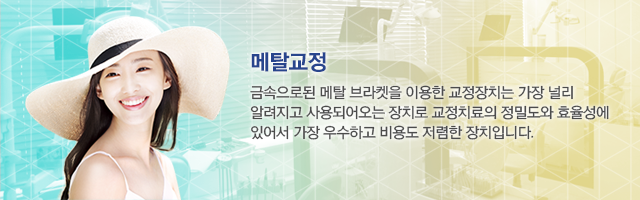 ±Ý¼ÓÀ¸·ÎµÈ ¸ÞÅ» ºê¶óÄÏÀ» ÀÌ¿ëÇÑ ±³Á¤ÀåÄ¡´Â °¡Àå ³Î¸® ¾Ë·ÁÁö°í »ç¿ëµÇ¾î¿À´Â ÀåÄ¡·Î ±³Á¤Ä¡·áÀÇ Á¤¹Ðµµ¿Í È¿À²¼º¿¡ ÀÖ¾î¼ °¡Àå ¿ì¼öÇÏ°í ºñ¿ëµµ Àú·ÅÇÑ ÀåÄ¡ÀÔ´Ï´Ù. ÇÏÁö¸¸ ±Ý¼Ó ÀçÁúÀÇ ºê¶óÄÏÀÌ ¿ÜºÎ·Î ³ëÃâµÇ¾î ½É¹ÌÀûÀ¸·Î´Â ÁÁÁö ¸øÇÏ´Ù´Â ´ÜÁ¡ÀÌ ÀÖ½À´Ï´Ù.